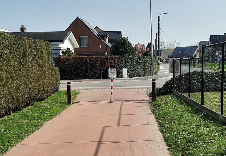 In het midden wordt een zacht paaltje geplaatst. De buitenste paaltjes worden verder van de weg geplaatst zodat er tussen de